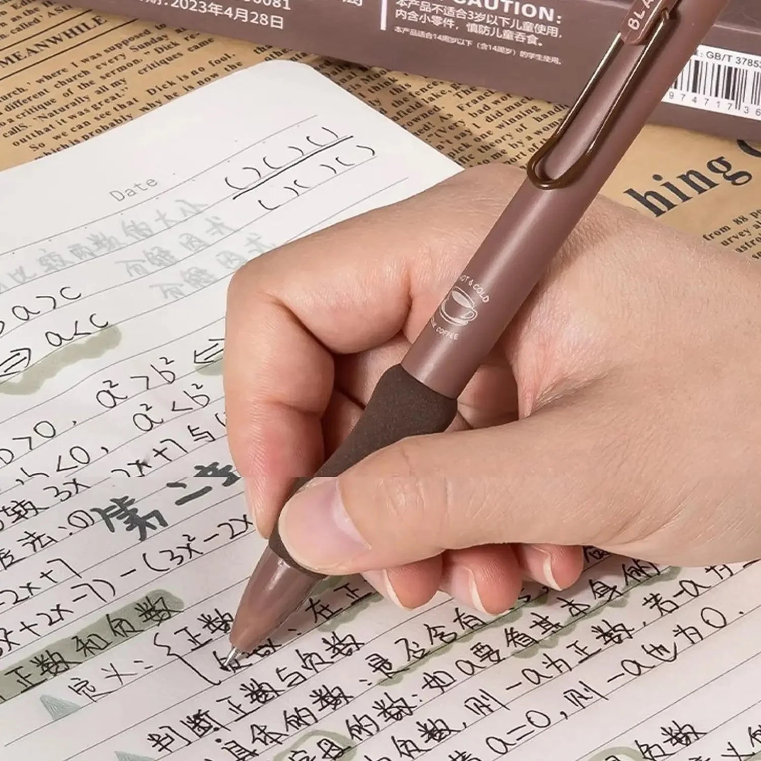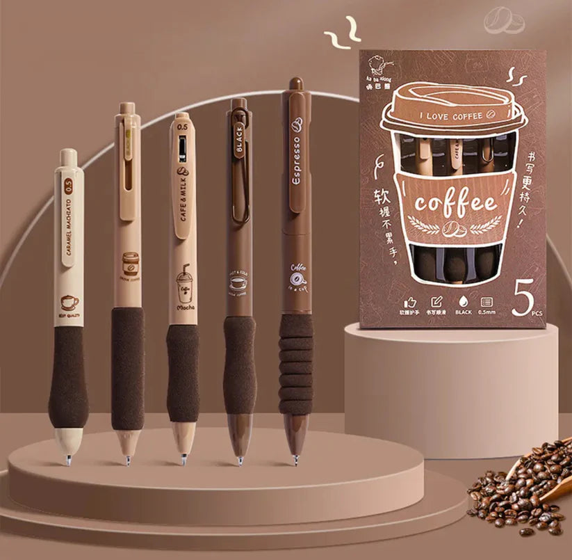 Boxed Set Cute Gel Ink Pens 5Pcs Coffee Cute Retractable Pens with Different Tips Quick Dry Ink Smooth Writing